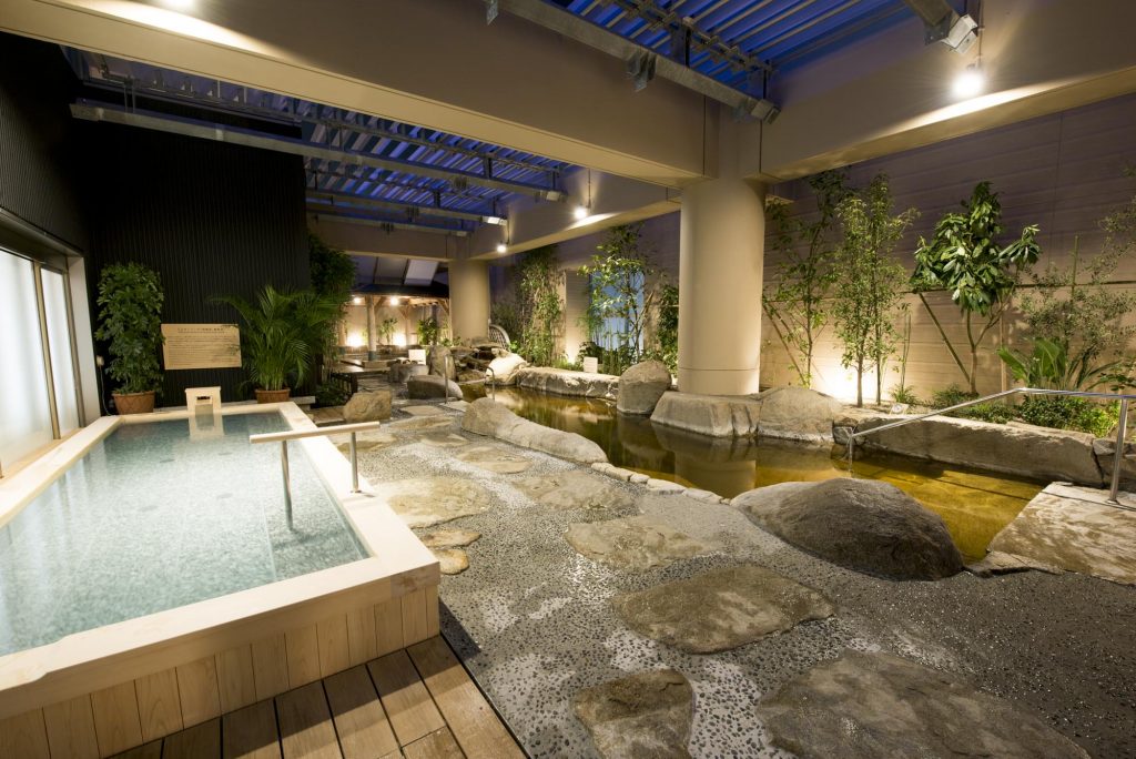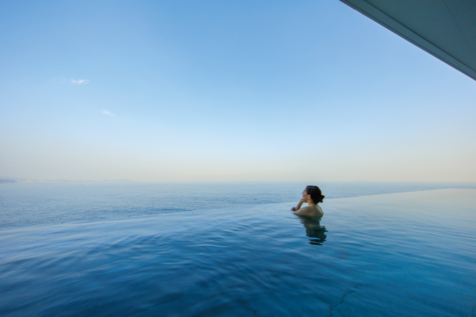 まるで海に浮かんでいるような感覚を味わえる全長約25mの露天立ち湯にかけ流し露天湯、展望サウナなど充実のスパが揃っています。休憩エリアも充実し、「海辺の別荘ライフ」をテーマとした趣向の異なるラウンジやテラス、ロウリュ、岩盤浴、カフェなども揃え、海を眼前にゆっくりと寛ぐことができます。