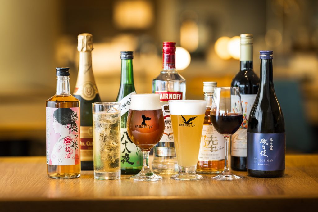 夕食ブッフェ会場であるレストラン「HARBOR’S W」とスカイレストラン「TOP・OF・ATAMI」では、夕食ブッフェご利用のお客様に、ビールやワイン、ウイスキー、日本酒、焼酎など、約25種類のアルコールをご用意しております。その中でもおすすめなのは、HARBOR’S Wオリジナルクラフトビールや、「磯自慢」などの地元静岡県の日本酒です。また、お酒が苦手なお客様やお子様にもお楽しみいただけますように、合わせてソフトドリンクもフリーフローとしてご提供しております。