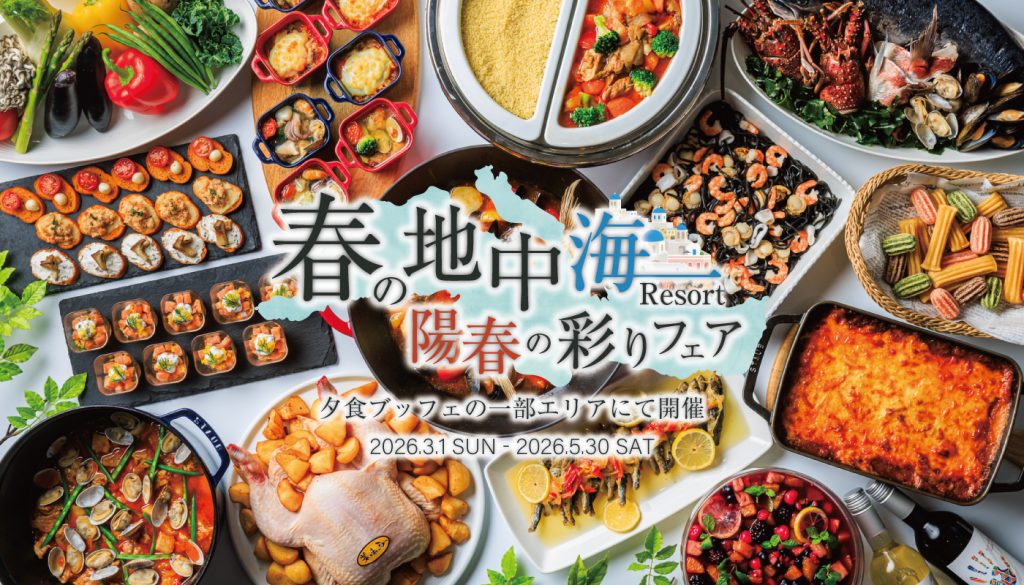 2026年3月~5月(予定)は、夕食ブッフェの一部エリアで「春の地中海リゾート 陽春の彩りフェア」を開催。